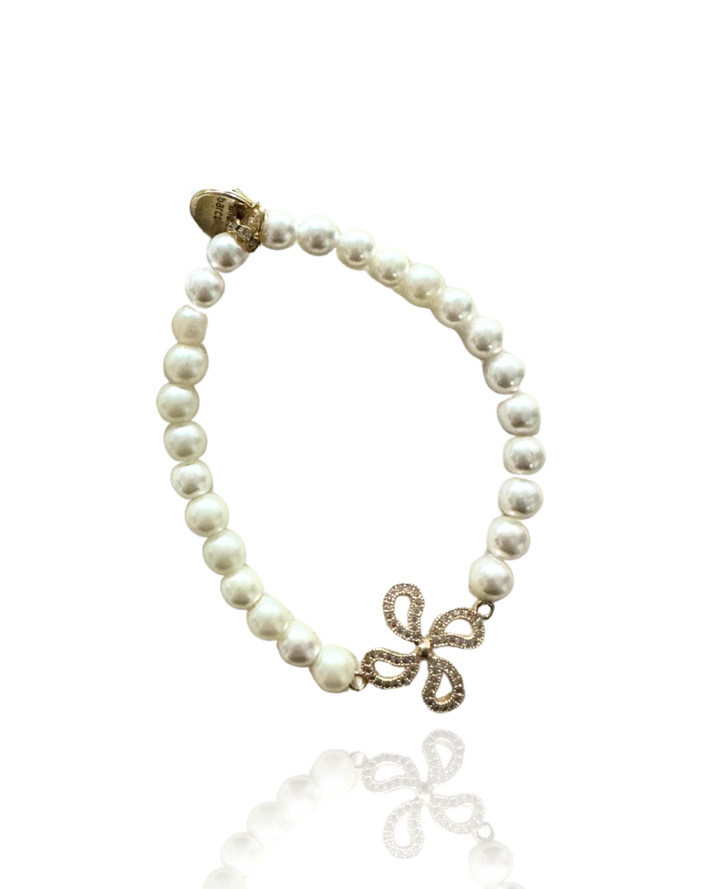 Um encontro de feminilidade e brilho sutil. Esta pulseira combina a suavidade clássica da pérola com o charme delicado da flor cravejada de zircônias, resultando em um acessório que ilumina o pulso com elegância e personalidade.